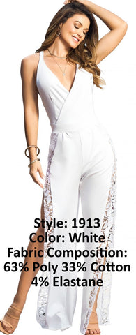 Sophistication and elegance are also part of a fresh look, perfect for summer. Jumpsuit with a revealing lace thigh slit and crisscross...