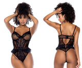 A sensual one-piece crafted in sheer mesh with delicate floral embroidery. Designed with adjustable straps and underwire cups for added support, it...