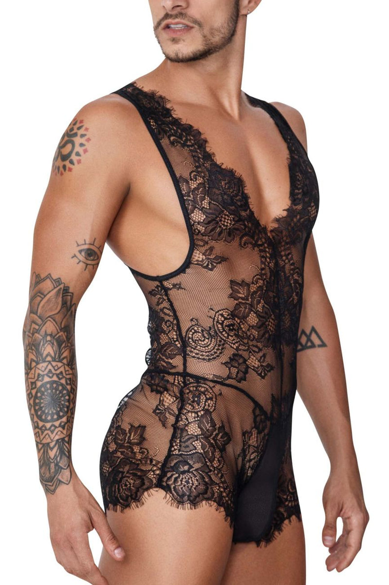The star feature of this bodysuit is the luxurious transparent fabric that envelops your body in sheer elegance. Delicately revealing and concealing, this sheer design adds an enticing element to your ensemble. Open back.