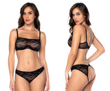 A classic yet sexy two-piece set. Featuring contemporary square neck lace top with underwire support  & adjustable straps and matching open back panty.
