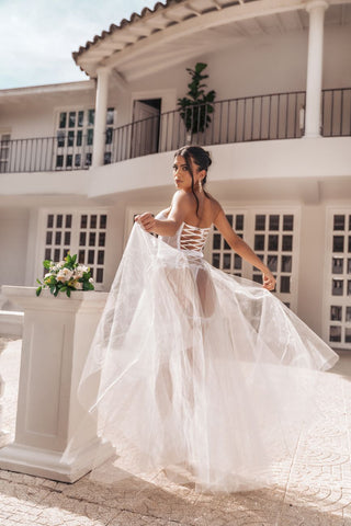 A timeless and feminine three-piece set, designed to beautifully complement your special day. It includes an underwire bra with adjustable straps, garter...