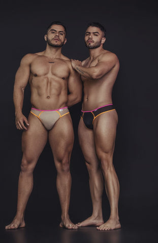 CandyMan 99687 Garter Jock Two Piece Set Color Beige-Neon