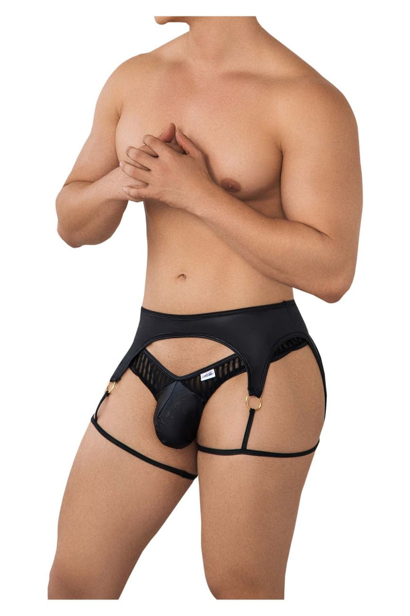 CandyMan 99403 Stripes Gaterbelt Thongs Color Black