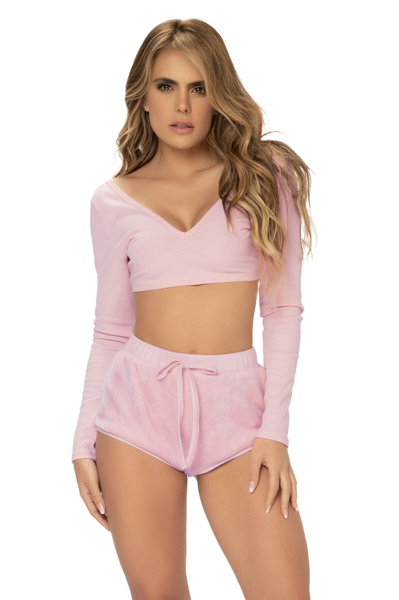 Mapale 7457 Two Piece Pajama Set Long Sleeve Top and Shorts Color Pale Pink