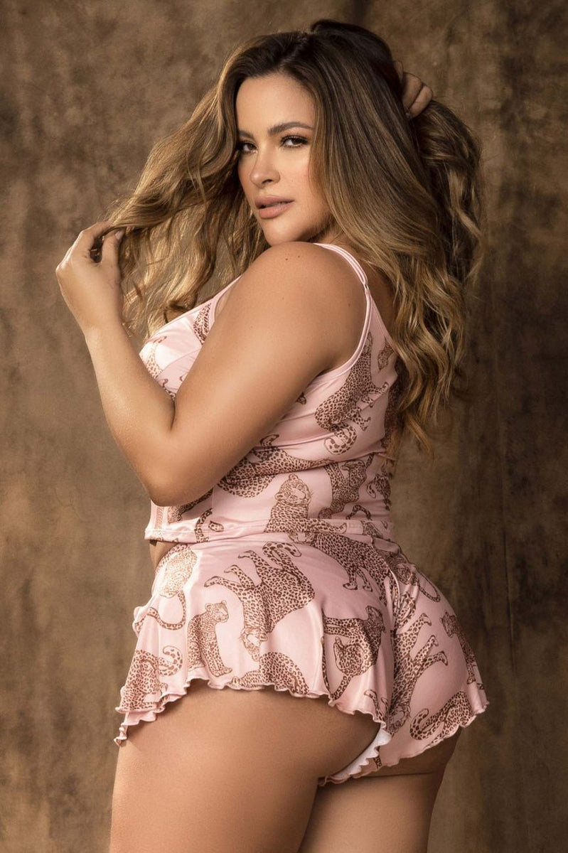 Mapale 7520X Two Piece Pajama Set Top and Shorts Color Wlid Pink