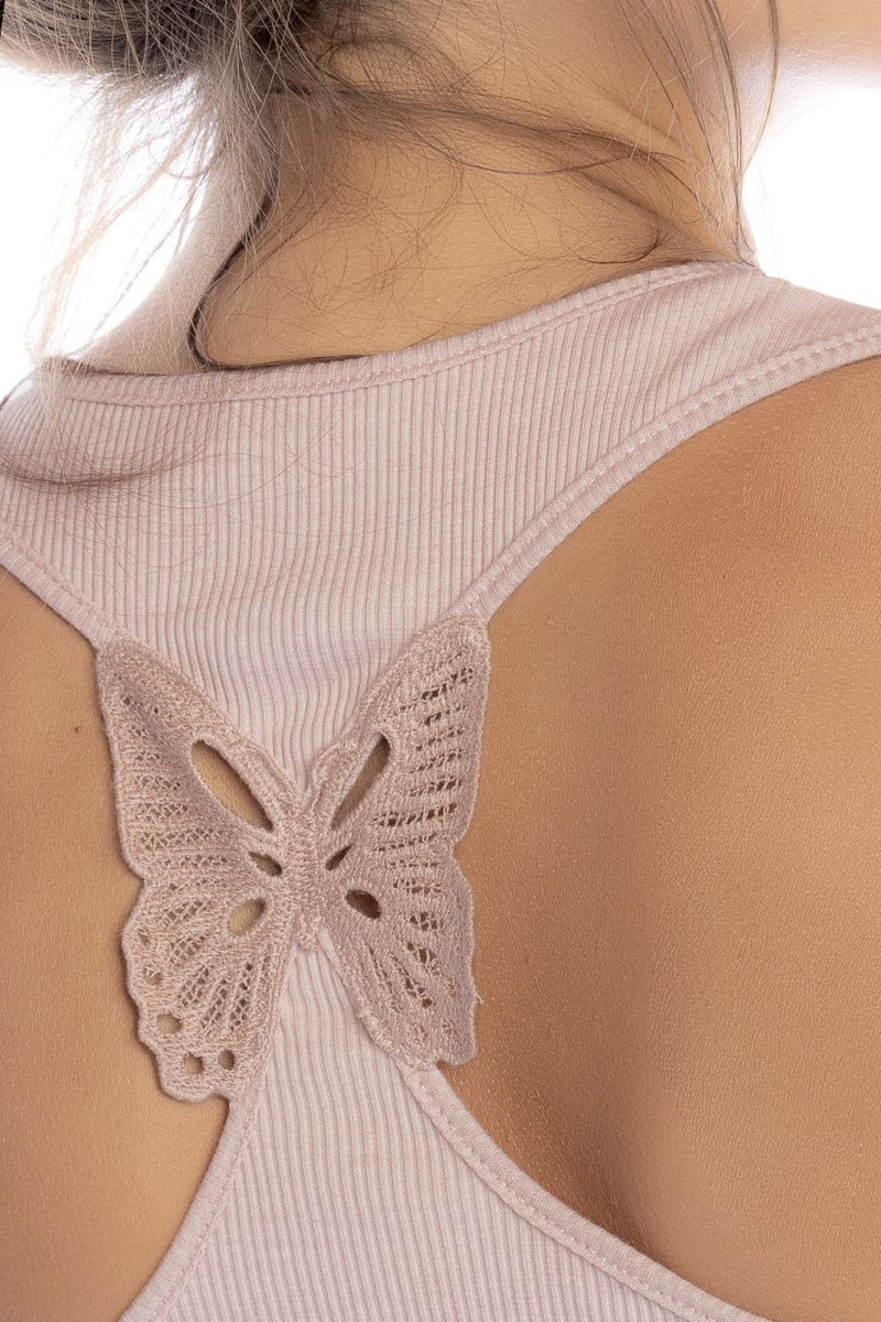 One of our most loved styles in a softer shade. Two-piece set in rosewood ribbed fabric,  embroidered appliqué detail on the back and adjustable length drawstrings on the sides.