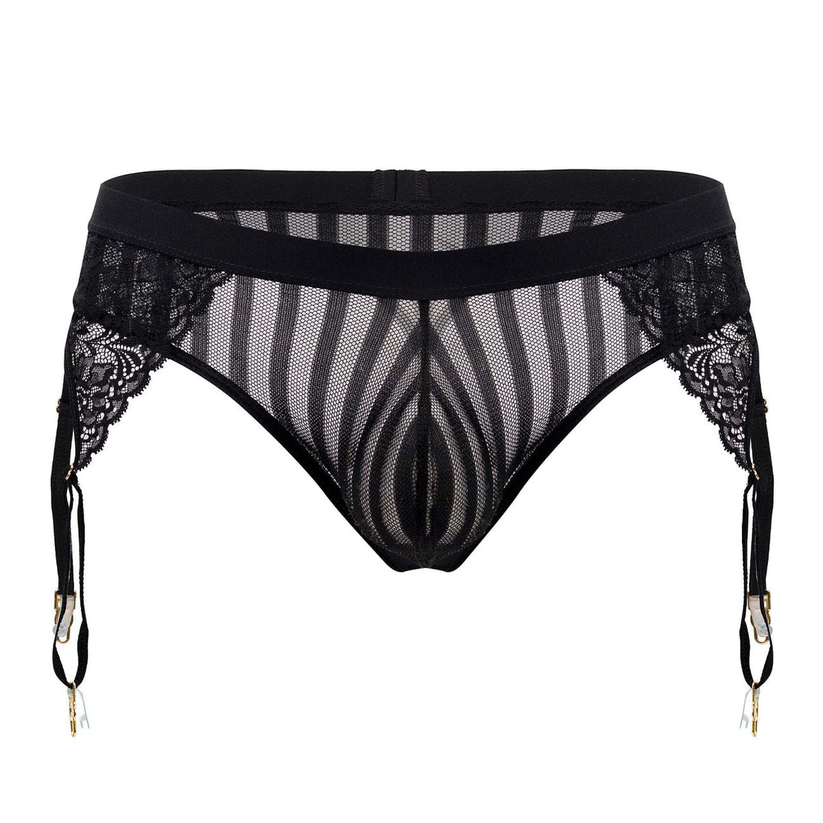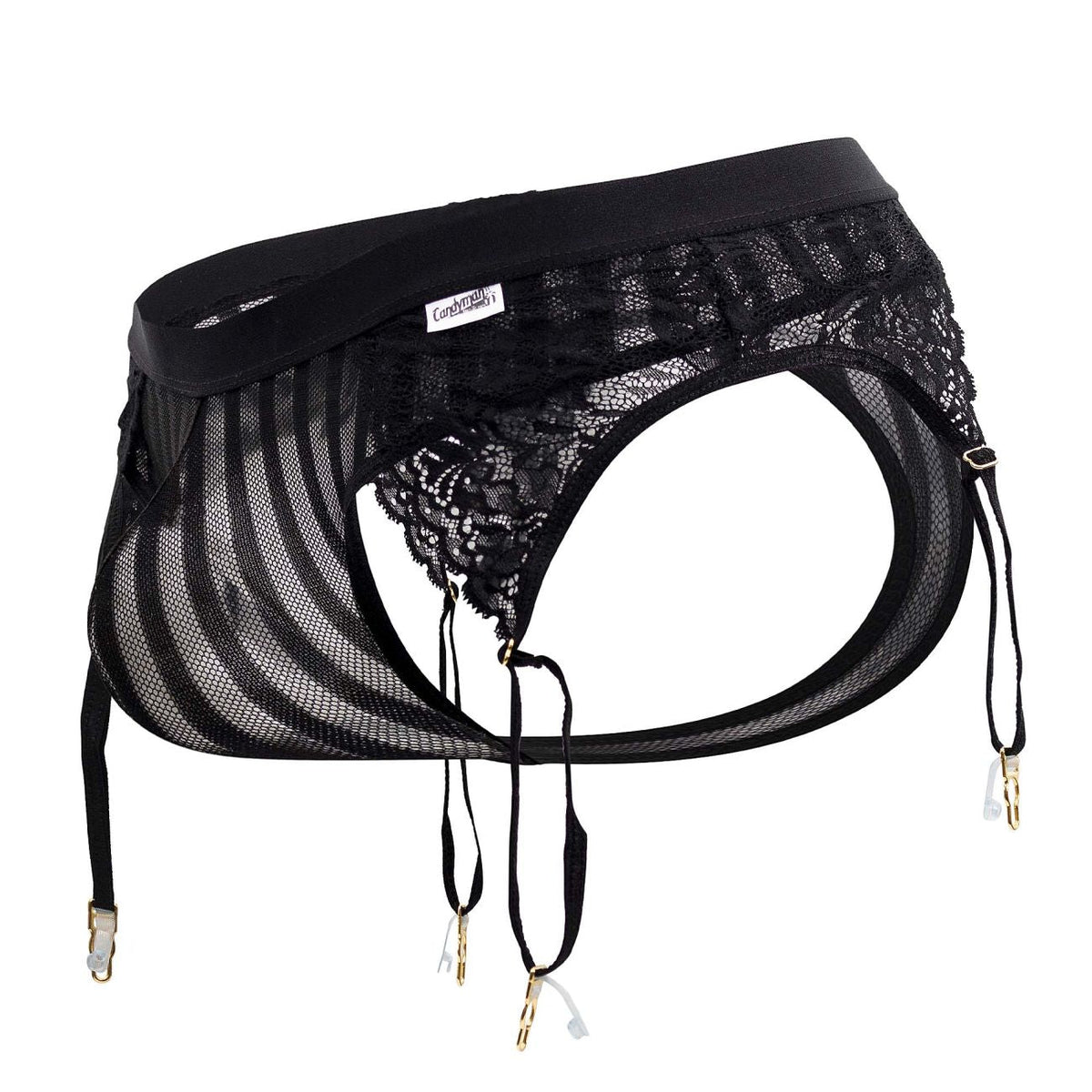 CandyMan 99403 Stripes Gaterbelt Thongs Color Black