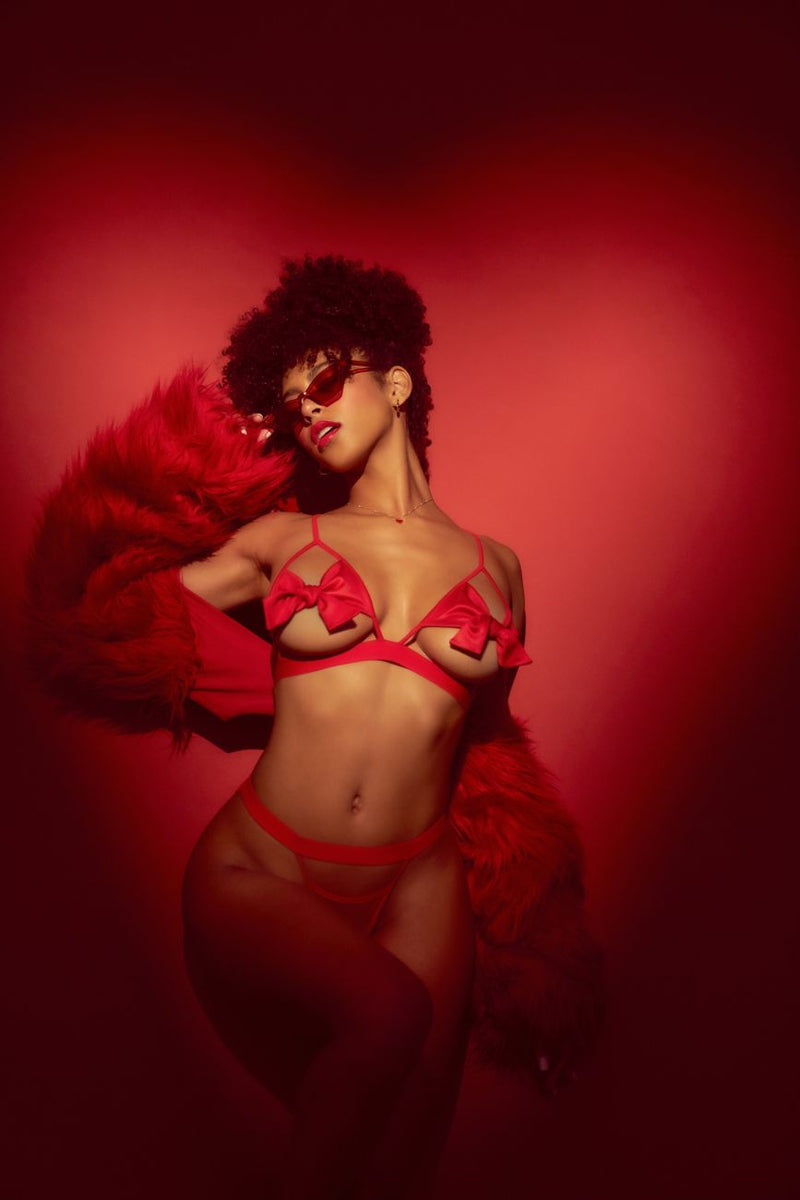 A flirty and romantic babydoll featuring metallic embroidered cups and a sheer mesh skirt with side slits and delicate bow details. Includes...