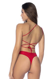 Unleash your sun-kissed skin in this vinyl monokini. Ties at the center and sides. Thong-bottom. Please refer to size chart to ensure...