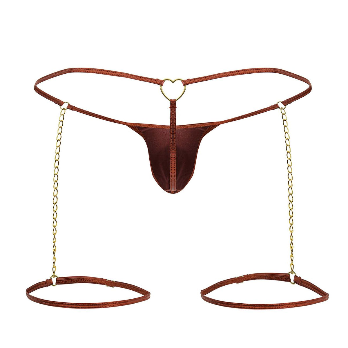 Dare to go bold! This ultra-revealing black thong with gold chain garter details is designed for those who own their confidence. With a sleek wet-look pouch, delicate chain accents, and a heart-shaped ring in the back, this piece is a showstopper from every angle. Sensual, daring, and unforgettable!