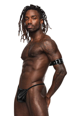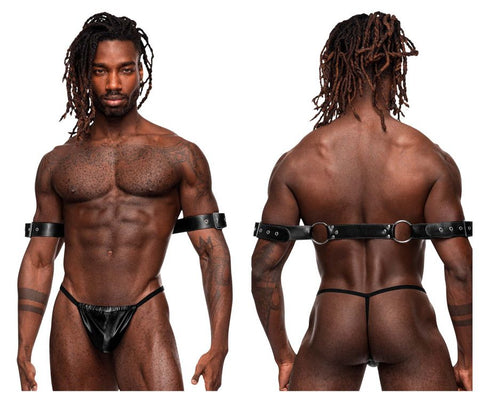 From the Leather collection by Male Power, this style includes: Arm restraints featuring adjustable metal buckles, attached rings, and decorative metal studding,...