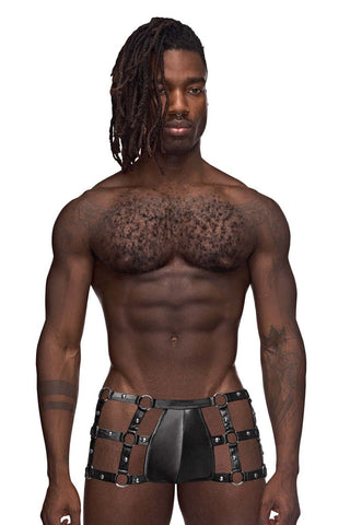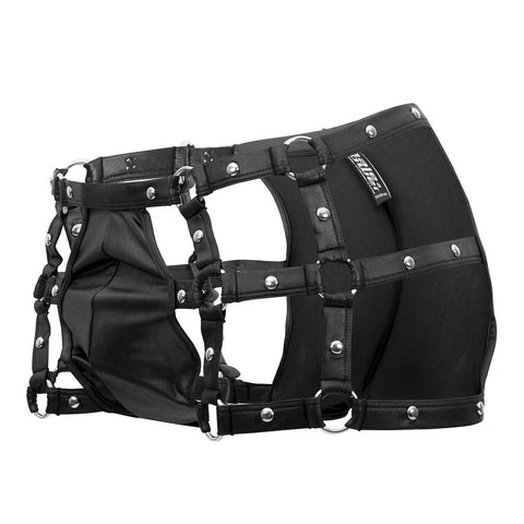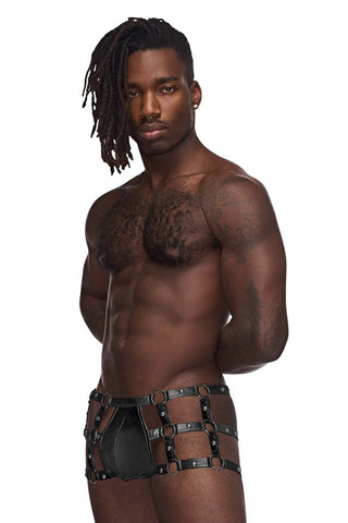 From the Fetish collection by Male Power, this style includes: A cutout cage short featuring studded fabric straps with metal rings. Stretchy...